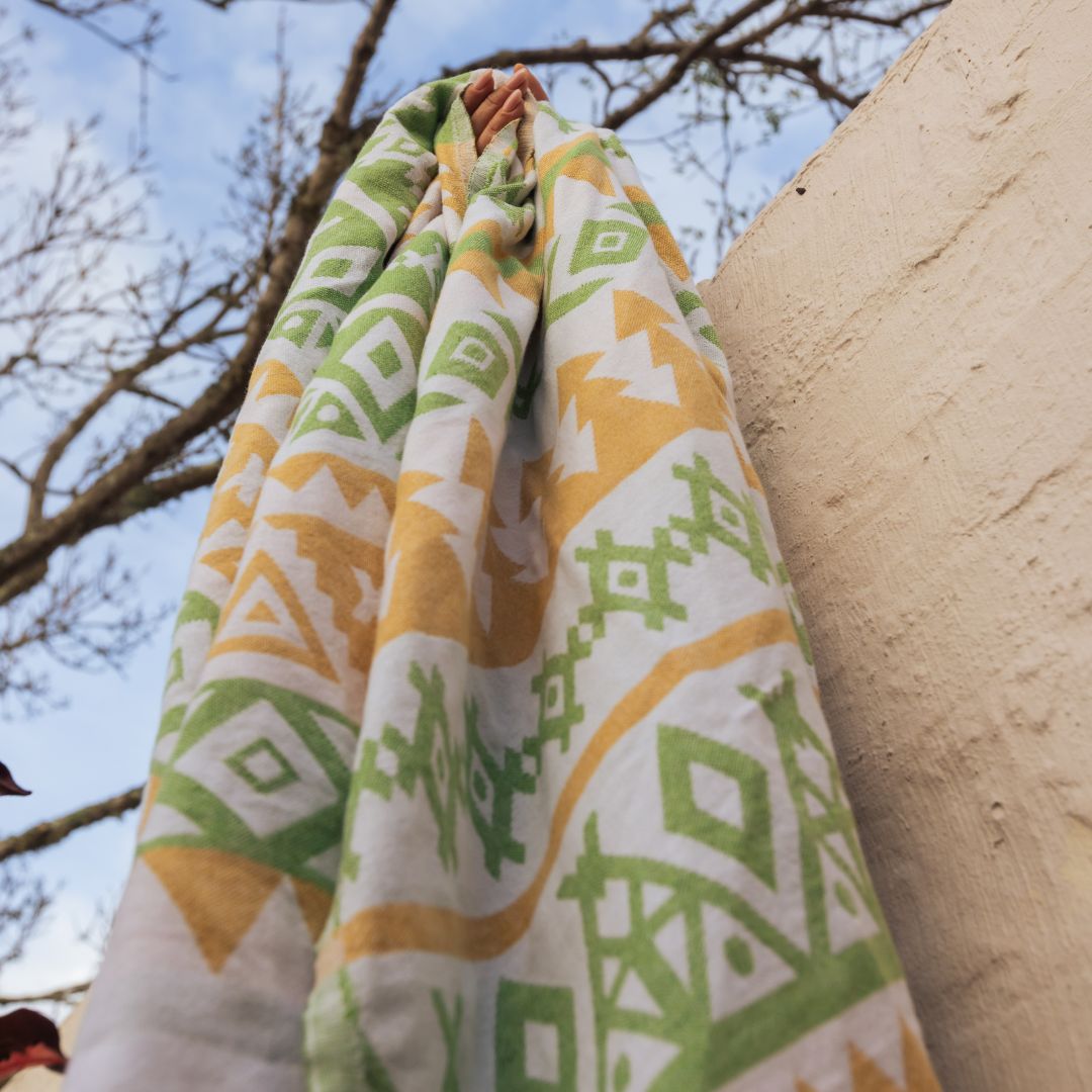 The Kasouga towel features a bold, linear pattern of diamonds, arrows, and geometric bands-bringing structure and rhythm to your everyday rituals. It's a timeless design with a modern, tribal-inspired edge.