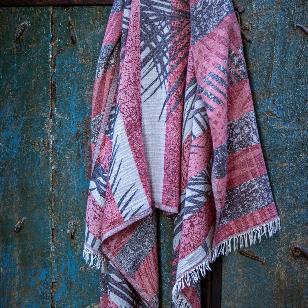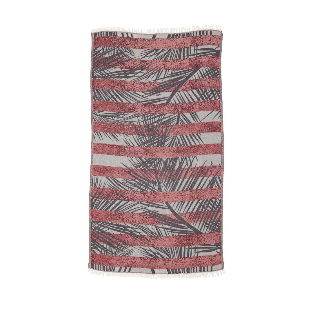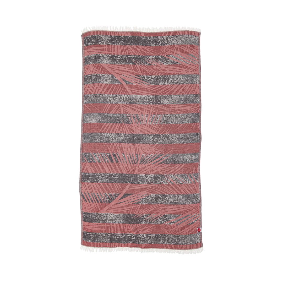 The Palm Leaf towel blends soft vertical lines with a flowing palm frond design-bringing a sense of movement and calm inspired by coastal living. It's reversible, showing one side in a lighter tone and the other in a deeper shade, so you can easily shift the mood.