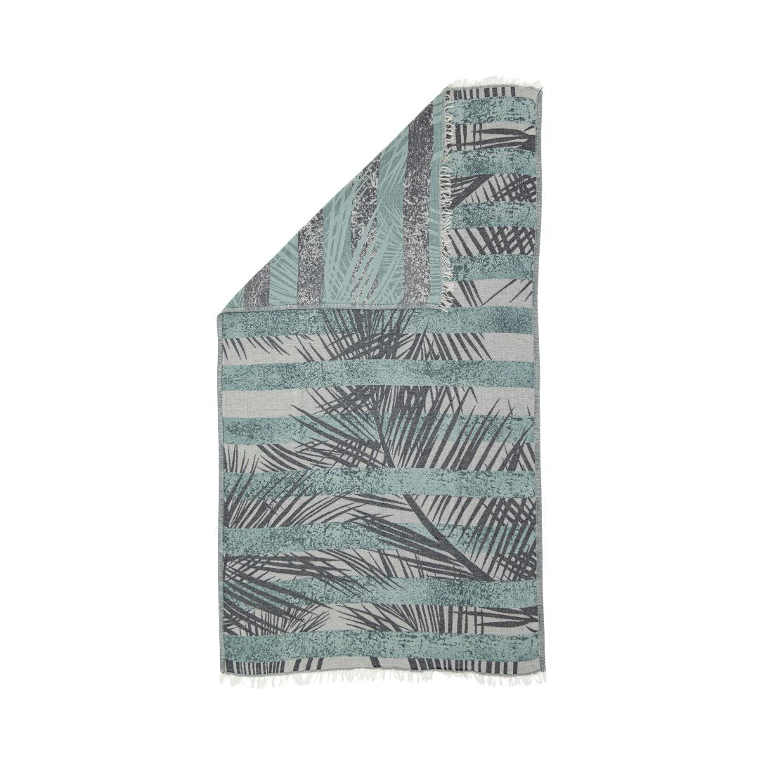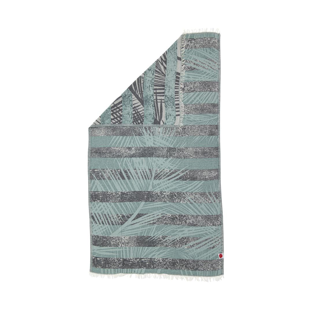 The Palm Leaf towel blends soft vertical lines with a flowing palm frond design-bringing a sense of movement and calm inspired by coastal living. It's reversible, showing one side in a lighter tone and the other in a deeper shade, so you can easily shift the mood.